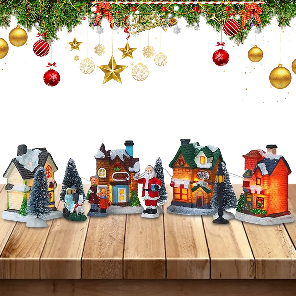 Feature: 1. Upgraded Design: The Christmas village figurines decoration set features an updated design that requires 2*AA batteries (not included). The LED lanterns of the Christmas village houses figurines create a beautiful and bright display at night, adding a warm and magical atmosphere. 2. Lightweight and Portable: Crafted from resin, ABS plastic, and electronic components, the Christmas winter village houses are lightweight and easy to move. Perfect for adding a festive touch to any space without hassle. 3. Perfect New Year Decorations: This Christmas town scene desktop ornaments set is ideal for decorating your home, office desk, fireplace, or under the Christmas tree. Enhance your holiday decor with these charming and festive pieces. 4. Ideal Christmas Gift: The DIY Christmas doll figurines make a perfect gift and collectible. They are great for decorating your dining table and are sure to bring more joy to Christmas. Surprise your relatives, friends, or children with this delightful Christmas village set. 5. Brings Good Luck for Christmas: These Christmas village houses figurines not only decorate your home and enhance the festive atmosphere but also bring good luck and happiness to your family. A wonderful addition to your holiday decor that spreads cheer and positivity. Specification: