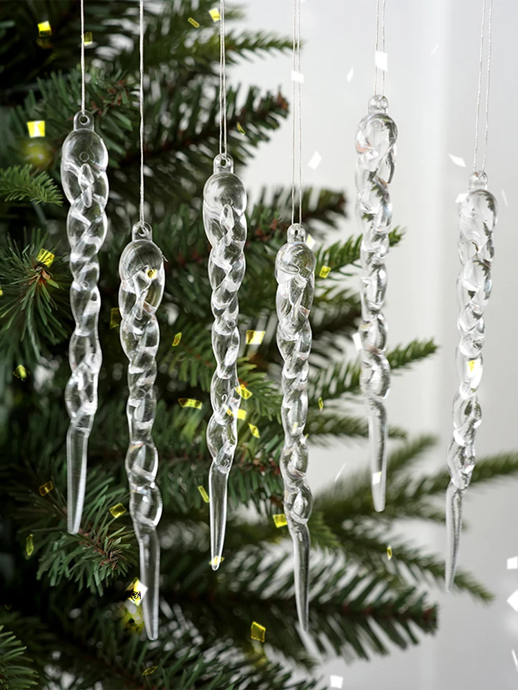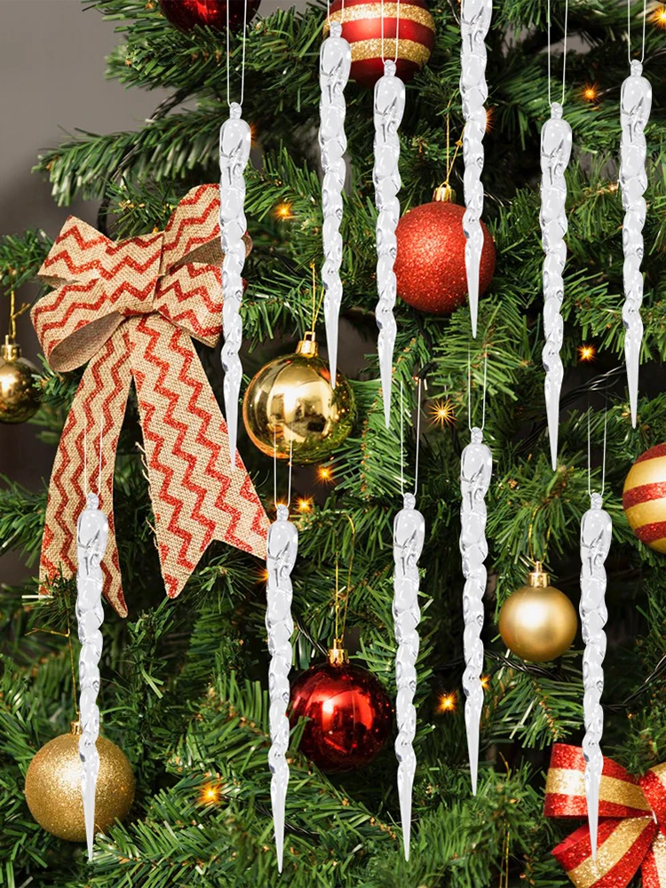 12Pcs Christmas Clear Icicle Decoration Hanging Icicles Ornaments Ice Strip Threaded Pendant for Winter Party Wedding Decoration