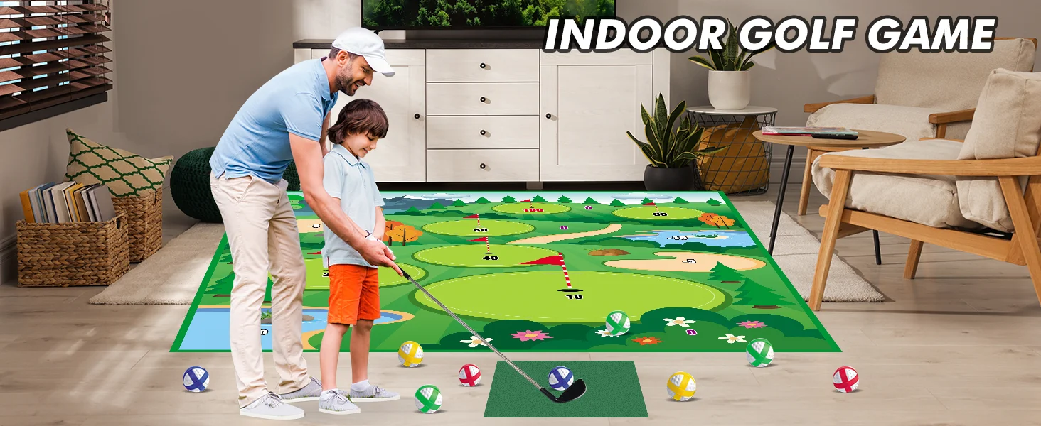 • Multifunctional Game Mats: The golf mat can be used not only as a golf game scence,or an indoor and outdoor game mat,picnic mat,but also as a toss game toy hanging on the wall or trees. It’s easy for compact storage,and portable even for kids to unroll for set up,invite friends to enjoy a golf game anytime and anywhere in the backyard,park,garage,living room,office,etc
