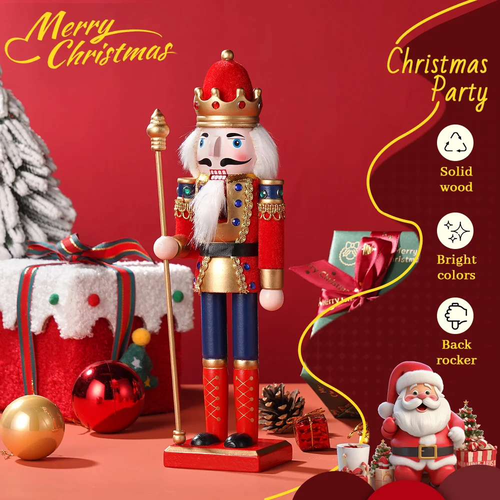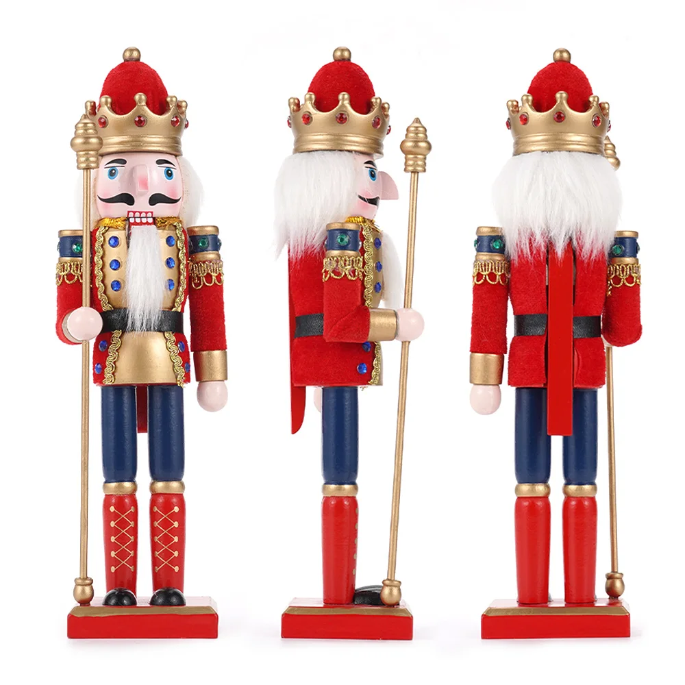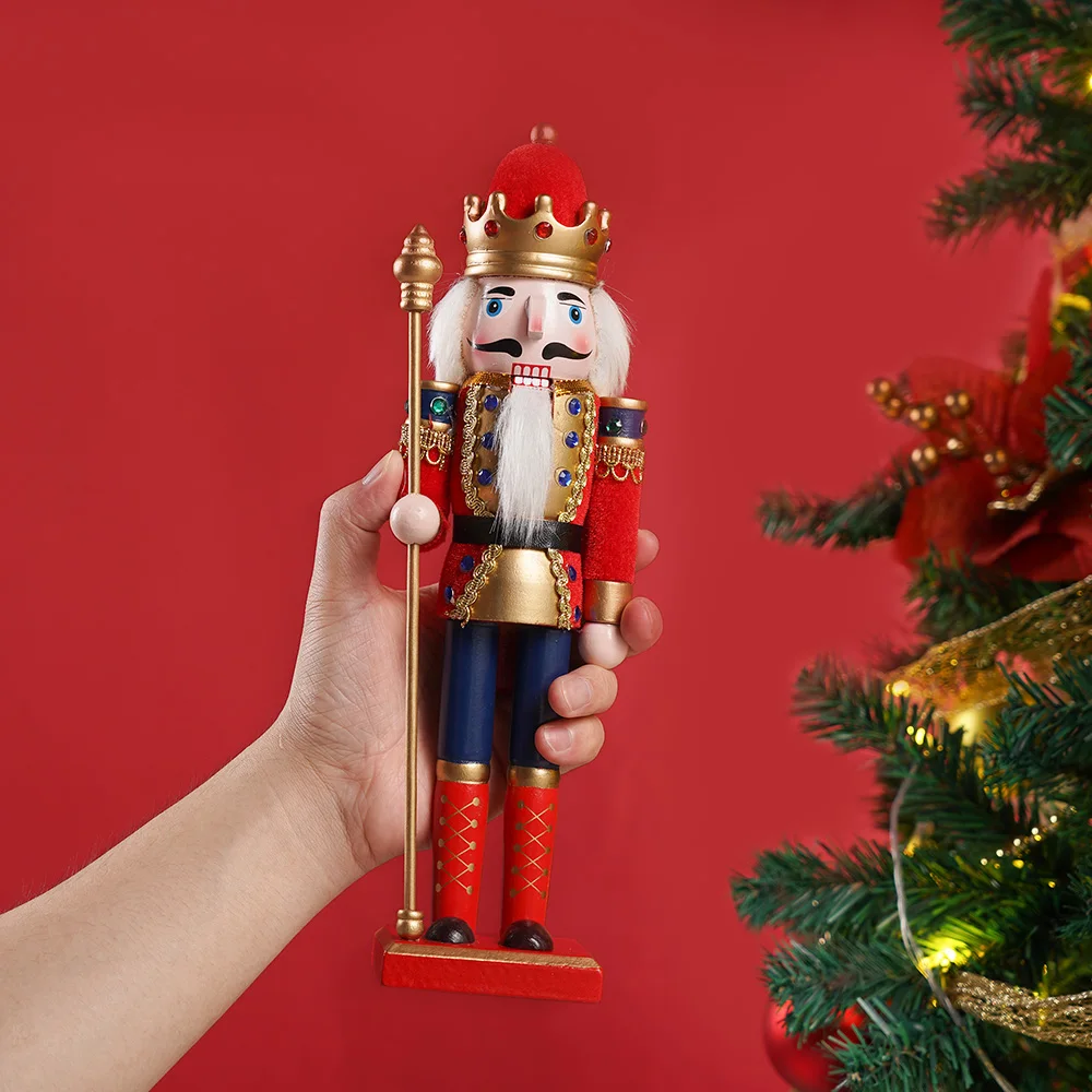 30CM Christmas King Nutcracker Statue Red Scepter Soldier Doll for Table Decor Family Home Gift
