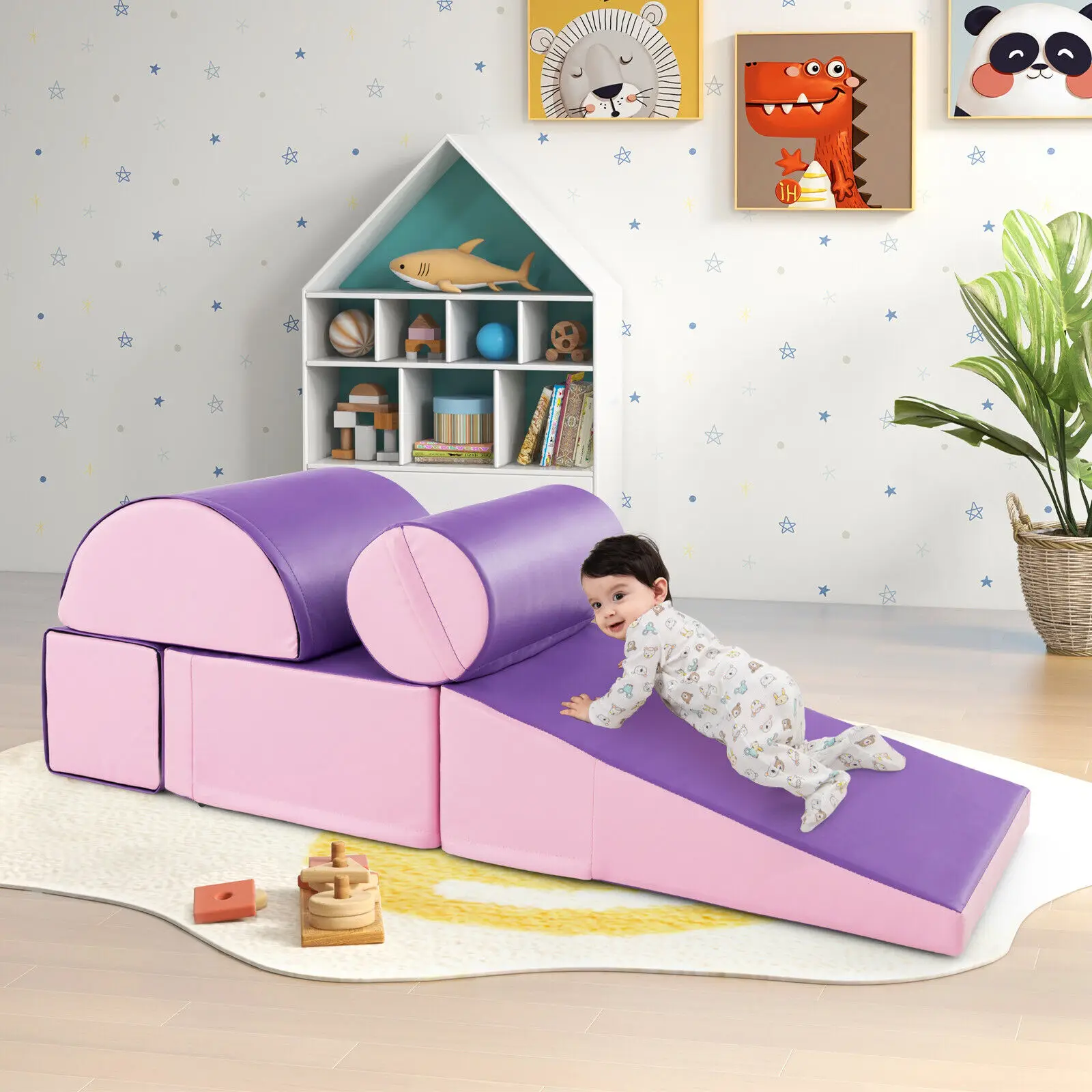 This foam play set includes 5 soft foam blocks in different shapes, which are small rectangle, large rectangle, triangle, cylinder and half moon. The bright color stimulates kids to improve their motor skills, balance ability, body coordination and more. Certified by UKCA, this crawl and climb foam playset provides you with peace of mind. The EPE foam filling effectively reduces impact, and the soft surface and corners also protect kids from injuries. The waterproof PU cover features smooth zipper for quick detachment. Filled with soft and high resilience EPE foam&