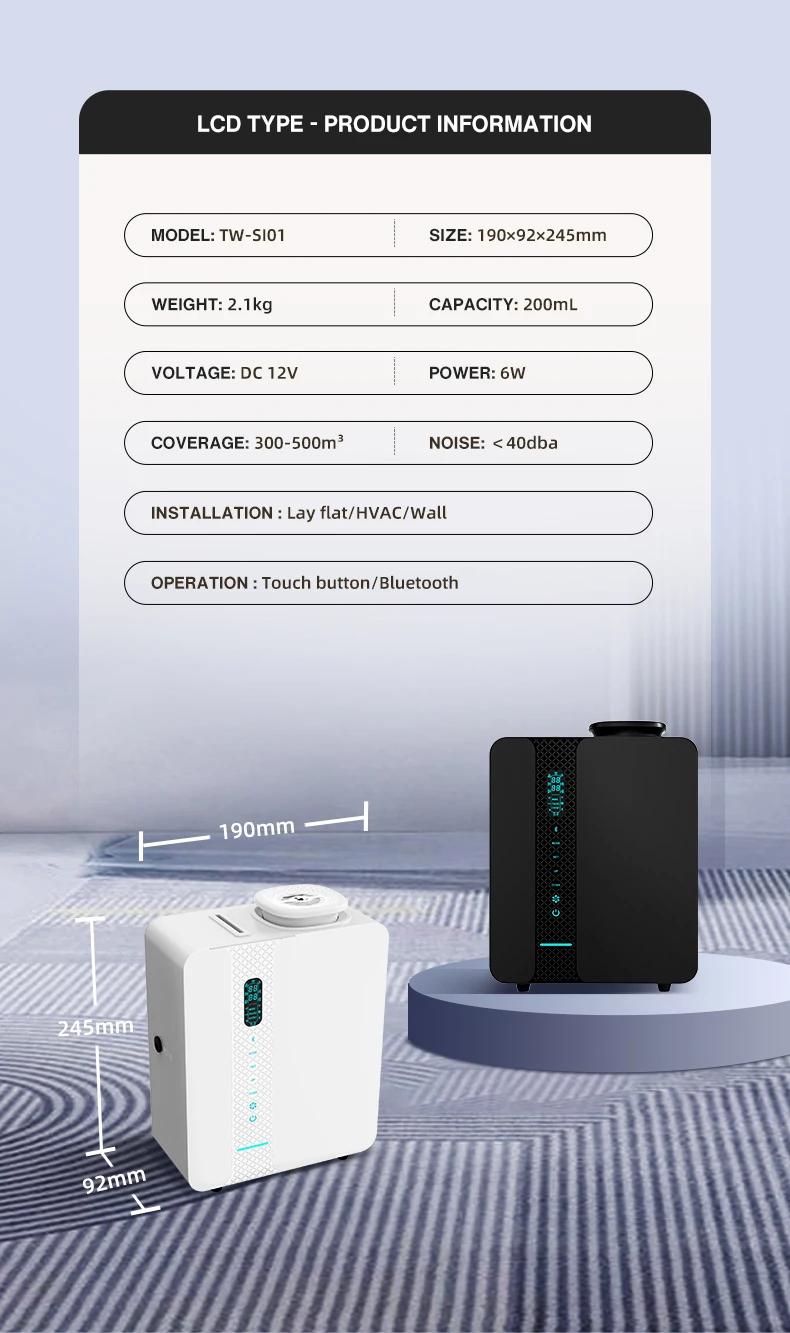 - Scent coverage area: 300-500 cubic meter
