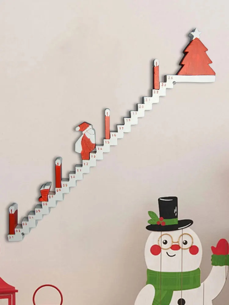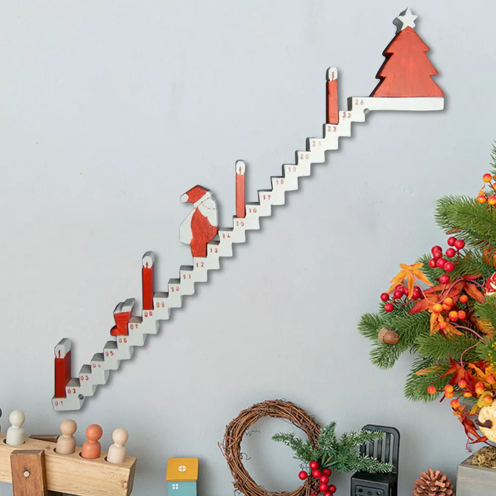 Christmas Advent Calendar 2024 Wooden Ornament Santa Claus Climbing Stairs Calendar Christmas Countdown Calendar 24 Days Xmas Countdown Calendar Home Decor Holiday Xmas Ornament Desk Decoration Gift