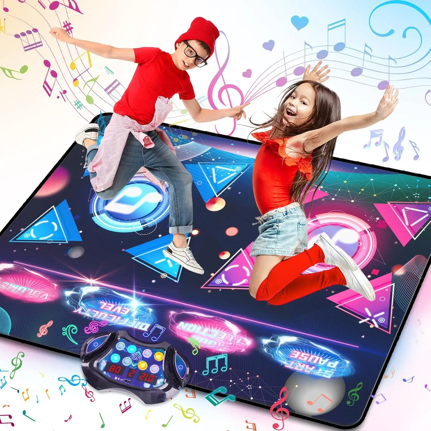【Single VS Double Dance Mat】This is a new upgraded and designed dance mat toy, which can support two people to dance at the same time and calculate the score separately, as it has two choices of single player training mode and double player competition mode, you can choose different modes according to your needs. The single mode is more abundant with 8 games; the two-player mode is more interesting, you can have a dance showdown with your family, friends brothers and sisters