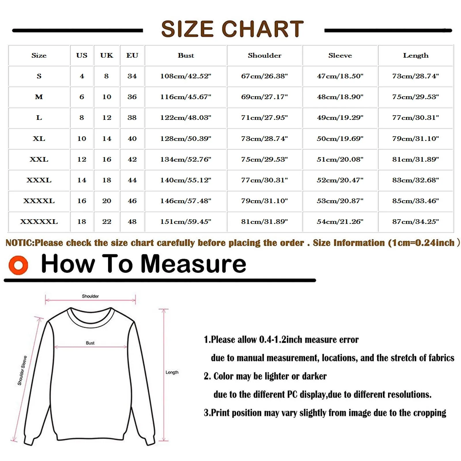 Size | Bust | Shoulder | Sleeve | Length |