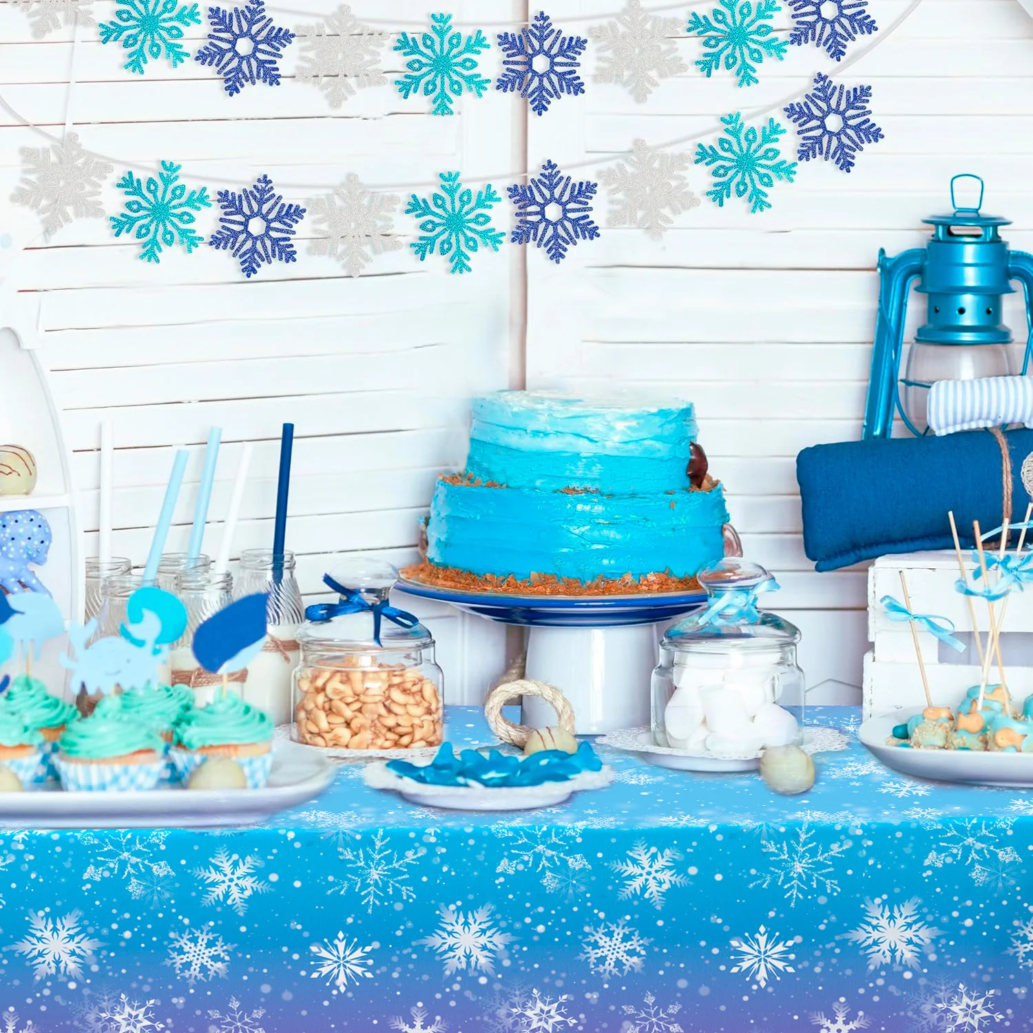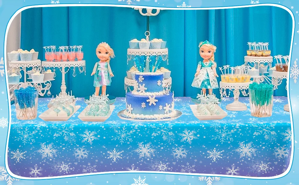 Winter Snowflake Party Tablecloths,3pcs Snowflake Party Decorations Tablecloths set-for Winter Snowflake Birthday Party Supplies