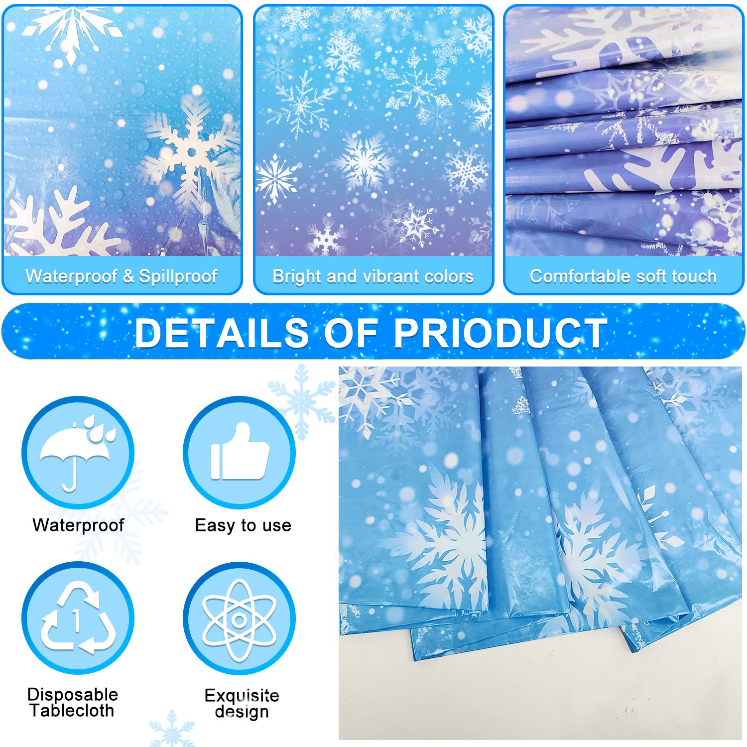 These snowflake party tablecloths are well used as snowflake photo snowflake backdrop or winter wonderland backdrop, great gifts for snowflake loved ones, Christmas party, winter theme party, winter wonderland party decorations, home Party decorations, baby shower decorations and Winter Xmas Holiday Party Decorations.